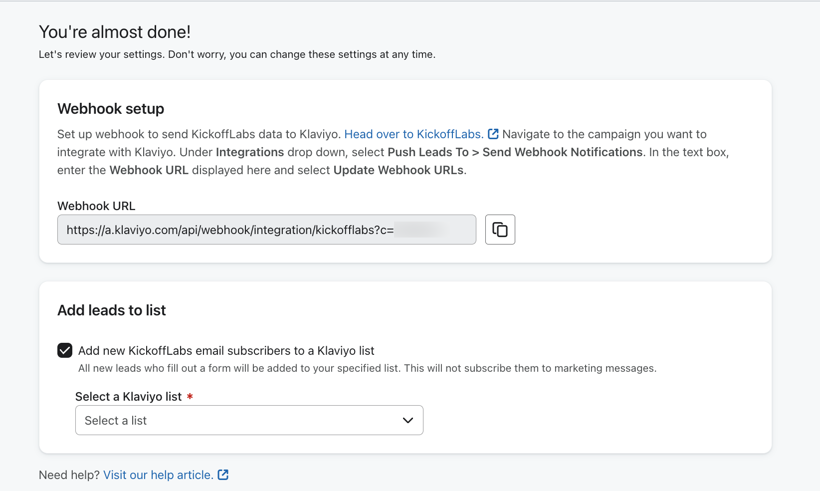 - Du har nu slutfört integrationen med Kickoff Labs.