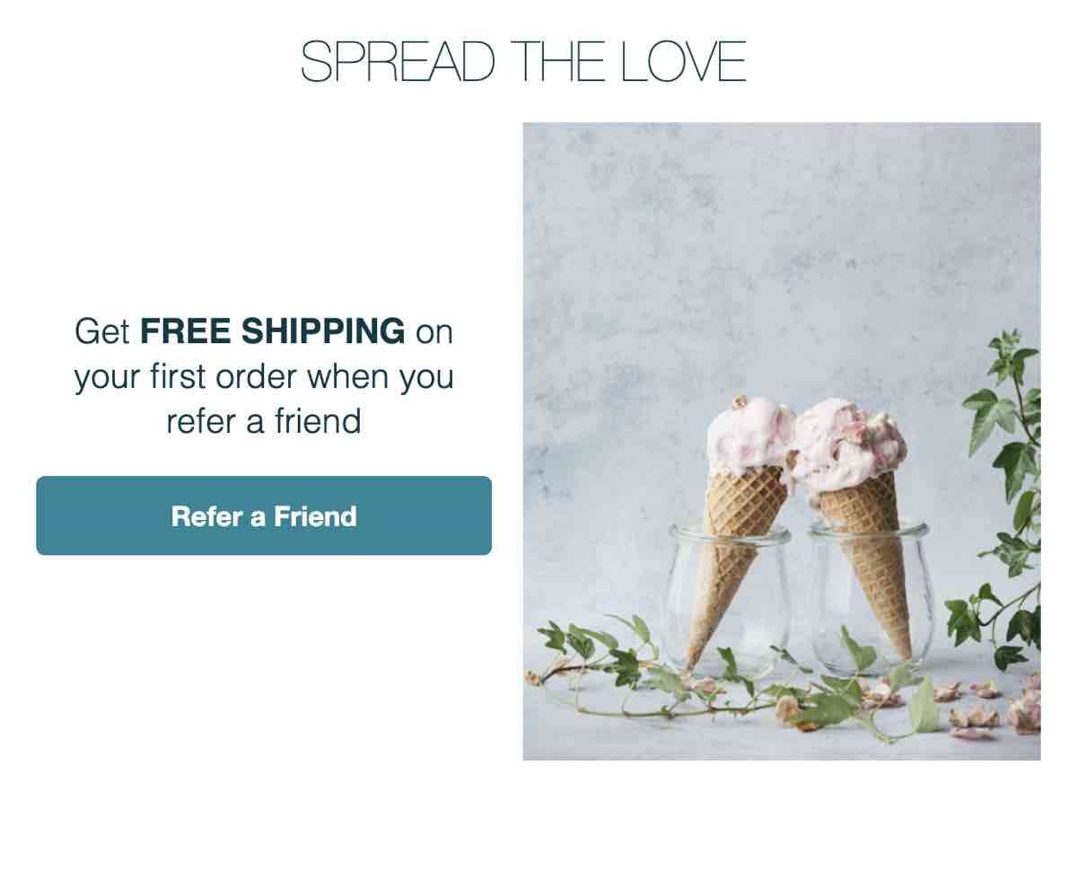 Till skillnad från delning block kan du använda vilken block som helst, ha flera block inom samma kolumn och välja att ha fler än två kolumner. Det här är till exempel en e-post med en bild på ena sidan och text och en knapp på den andra.