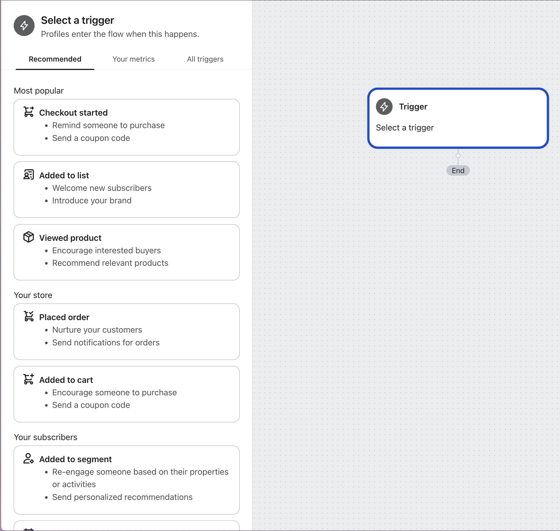Nu när du har skapat ditt första flöde på Klaviyo kan du fortsätta att utforska nya flöden för att vårda och engagera din kundbas under hela deras livscykel med ditt varumärke.