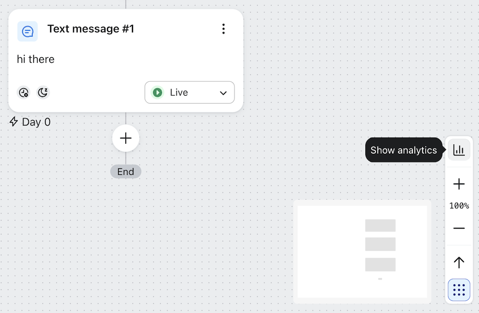 - När du är inne i byggaren för ett visst flöde klickar du på Visa analys i verktygsfältet nere till höger.