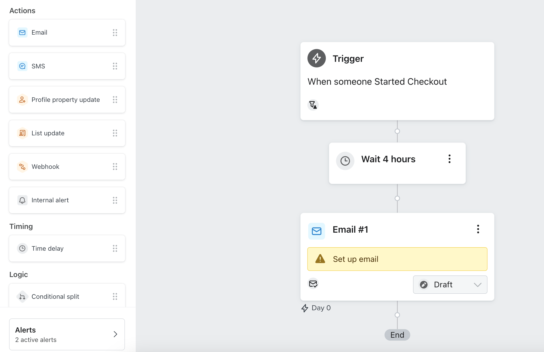 - Dra e-postkomponenten från sidofältet och släpp den på valfri släppunkt på flöde canvas.