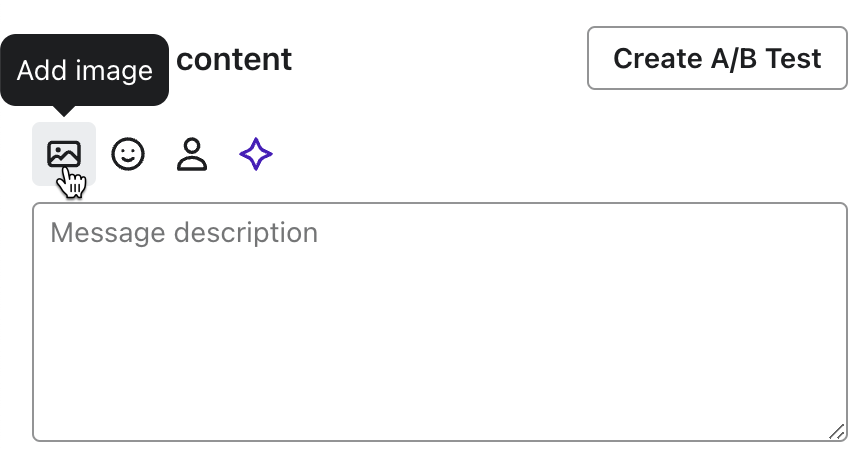 Till vänster klickar du på ikonen Add image (en bildikon) i rutan Message (Meddelande ).