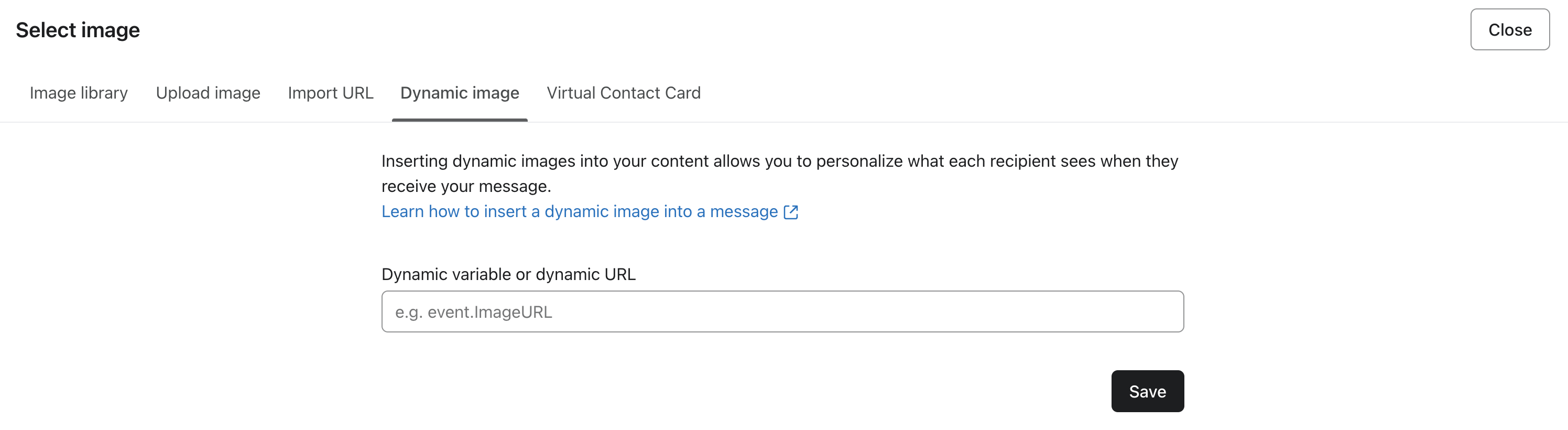 - Klistra in den dynamiska variabeln eller den dynamiska URL:en för bilden.