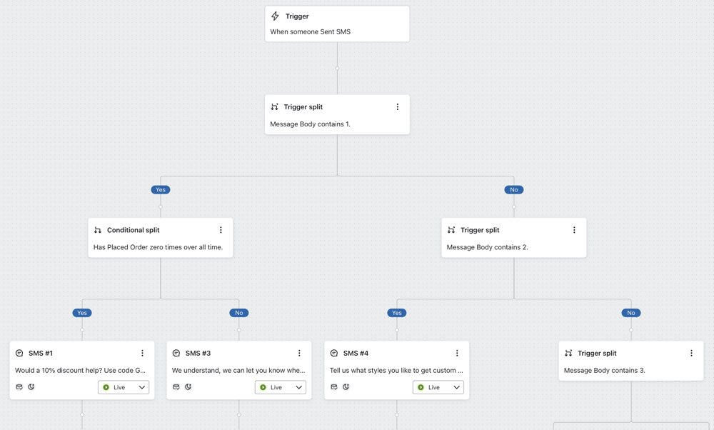 Om prenumeranten svarar, svarar du antingen tillbaka via en konversation eller sätter upp ett flöde för att trigga det inkommande meddelandet, och anpassar svaret baserat på vad prenumeranten säger.