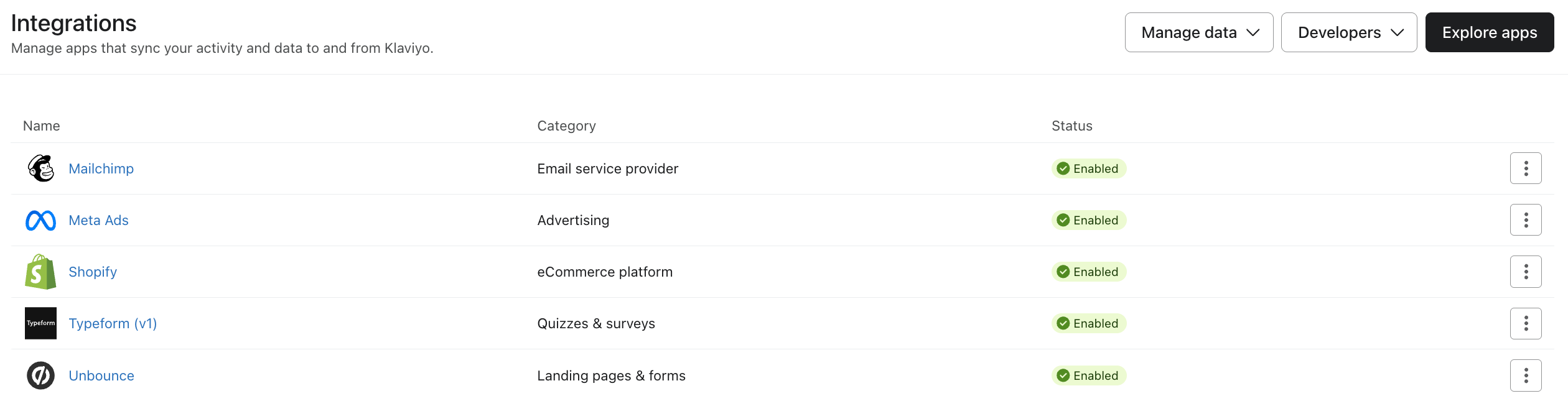 För integrationer som skapats av Klaviyo, sök efter lämplig startguide i vårt hjälpcenter.