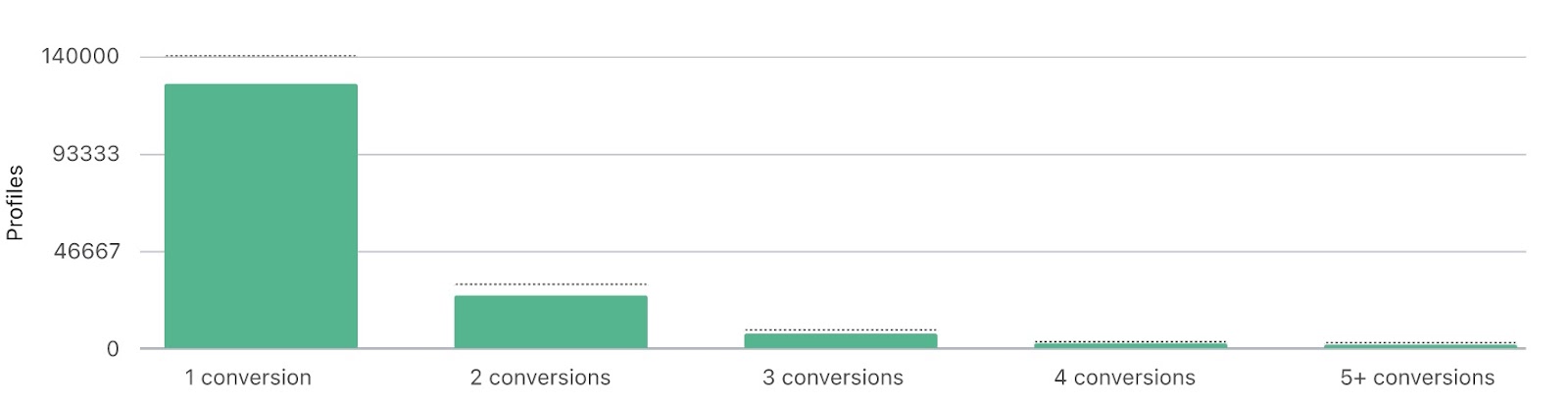 Lär dig hur du analyserar din totala konvertering och inkomst, inklusive KAV, via instrumentpanelen konvertering overview. Du kan också se hur många profiler som slutför olika antal konverteringar och den totala inkomst som de representerar. Denna instrumentpanel gör det möjligt för dig att optimera marknadsföringsinsatser och öka konverteringsfrekvensen genom att rikta in dig på specifika segment baserat på konverteringsbeteenden.