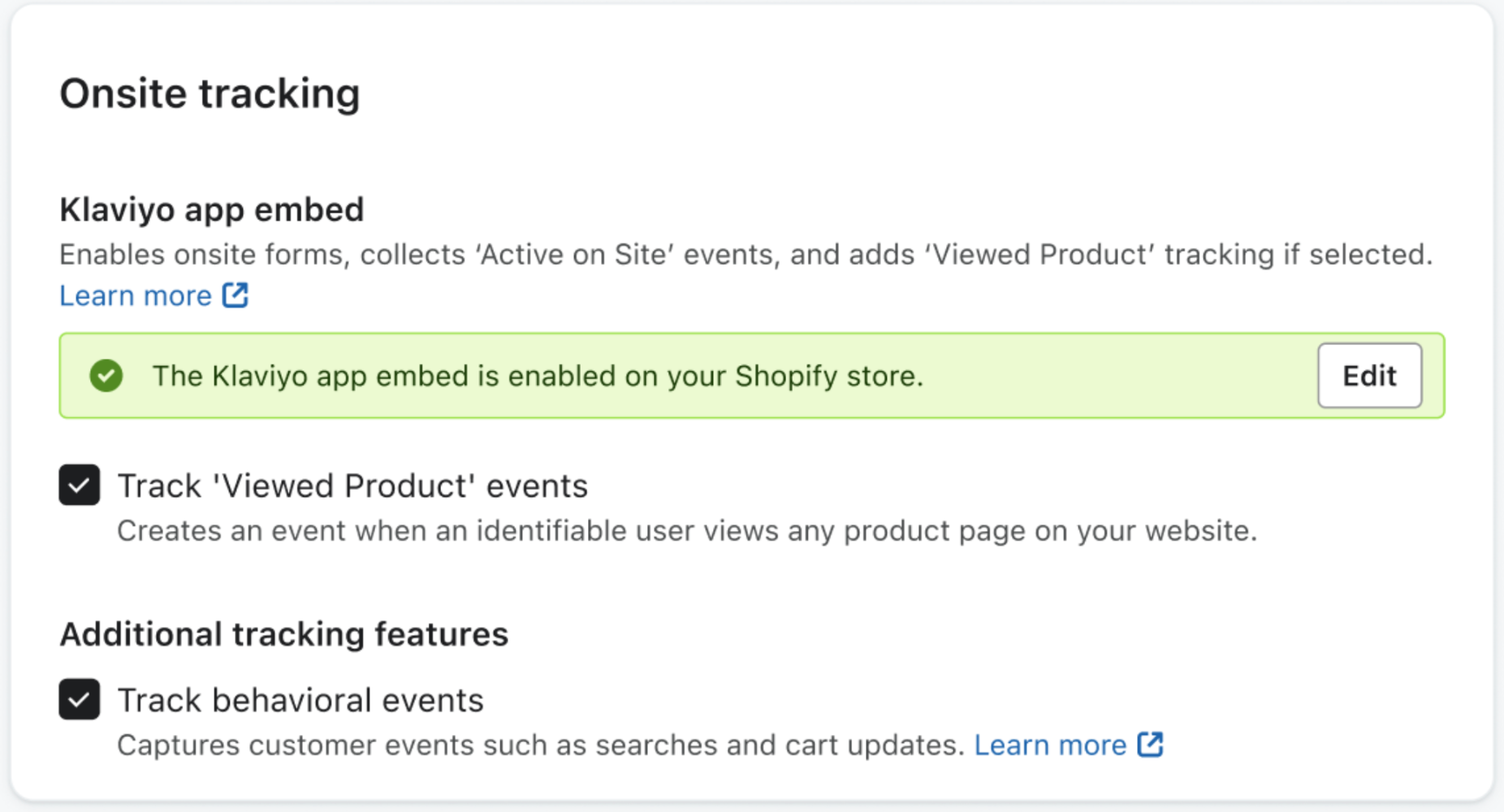 Är du ny på Klaviyo? Du kan spåra Shopify Added to Cart-händelser i Klaviyo automatiskt genom att aktivera spårning på plats.