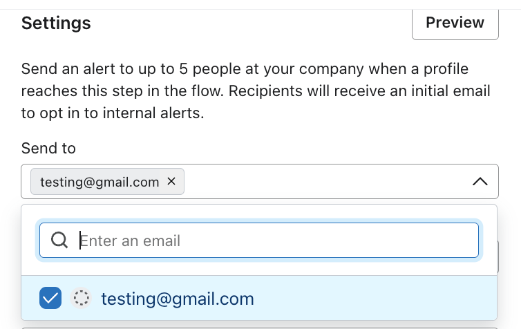 Lär dig hur du väljer in och ut den interna varningsåtgärden i ett Klaviyo-flöde. En person behöver inte ha en profil på Klaviyo Konto, eller existera som Konto-användare, för att få e-post från en intern larmåtgärd. Alla mottagare måste dock välja att ta emot interna aviseringar från ditt Konto innan de börjar ta emot några meddelanden. De kan också välja att avstå när som helst. I den här artikeln förklarar vi mottagarens opt-in- och opt-out-process för den interna varningsåtgärden samt de olika statuserna.