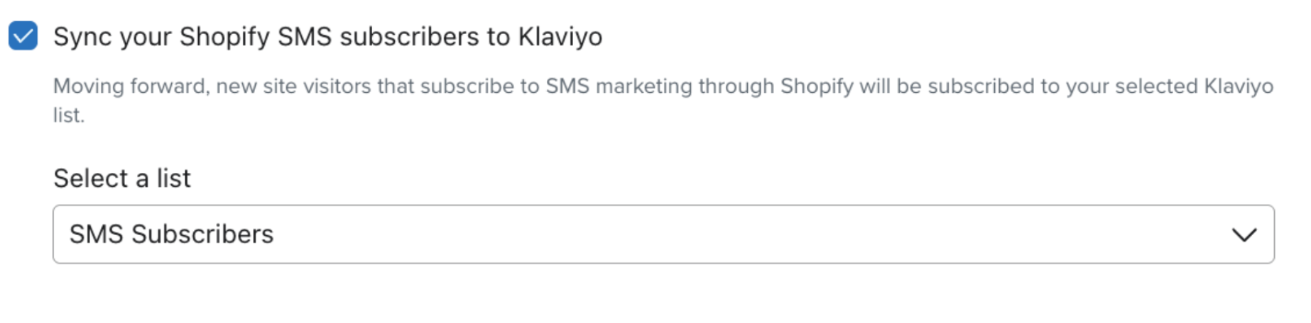 Samtycke kommer endast att synkroniseras till Klaviyo om personen prenumererar på sms i Shopify för första gången. Läs om hur du lägger till historiska Shopify sms prenumeranter i din lista.