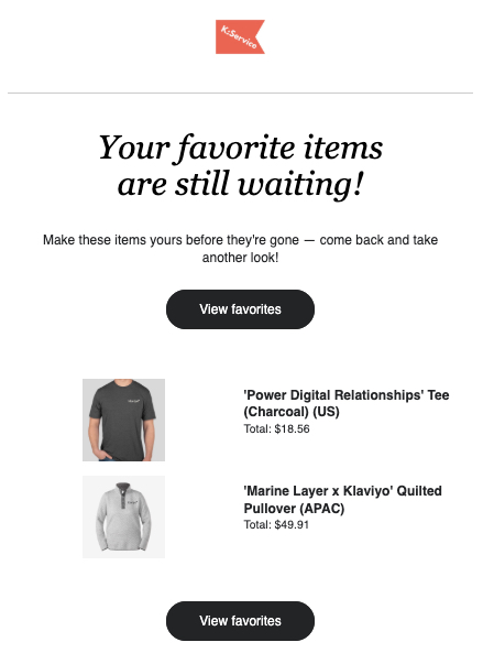Om Klaviyo's favoriter påminnelse flöde