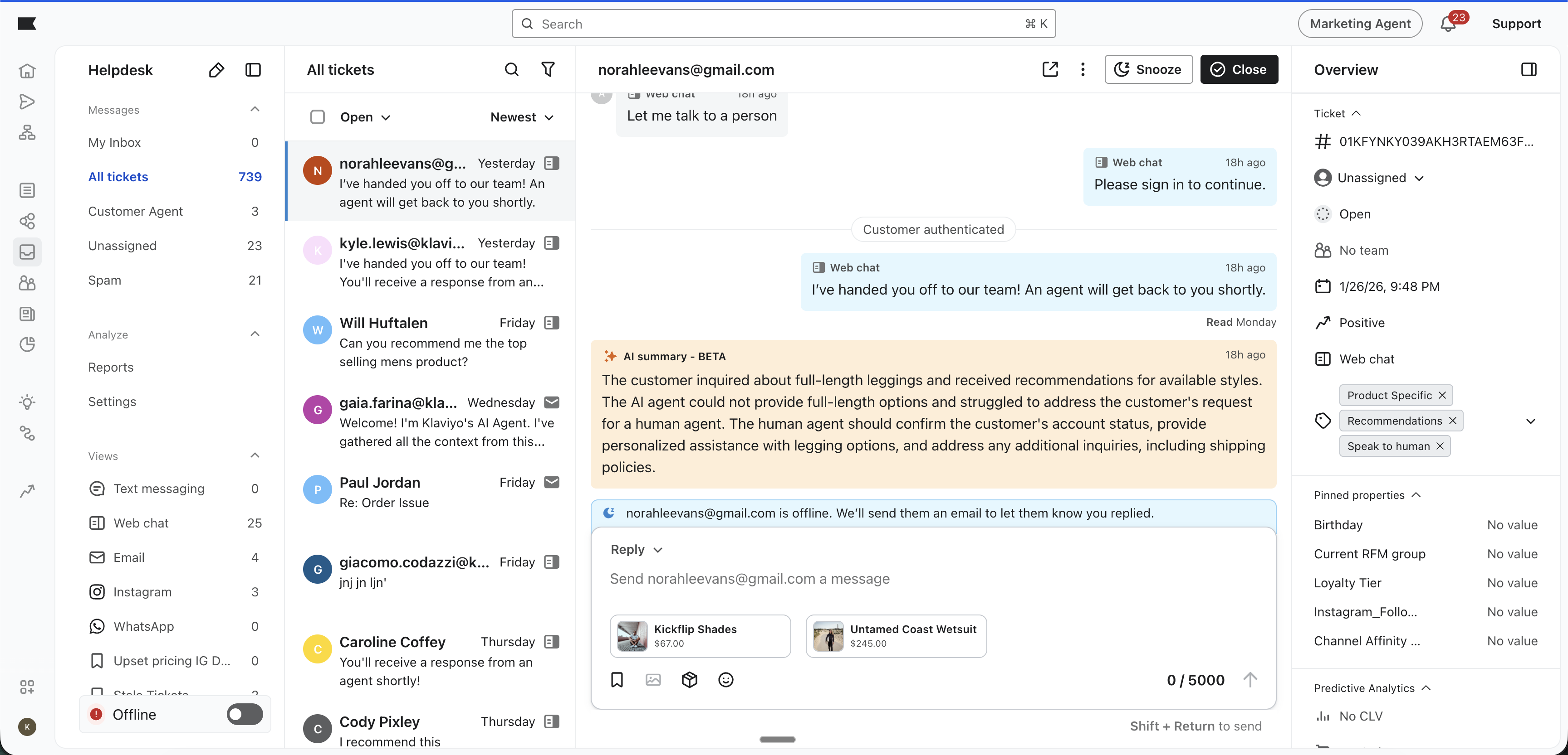Genom att ge supportteamet enkel åtkomst till produktförslag med ett klick kan Helpdesk låta teamet växa från att bara lösa problem till att erbjuda en concierge-upplevelse för kunder som hör av sig.