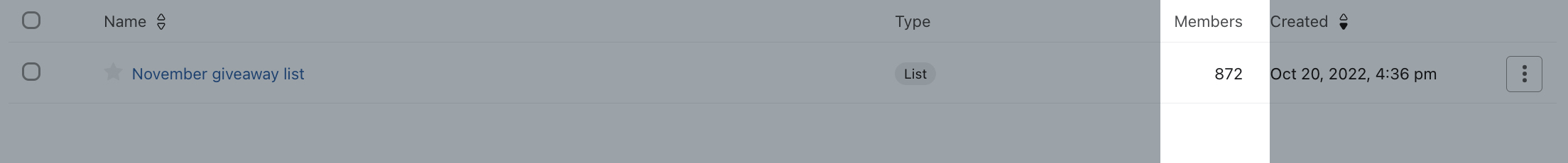 För att se en listas storlek, navigera till segmentfliken Lista & och sök sedan efter din lista. Numret på lista medlem hittar du i medlemskolumnen.