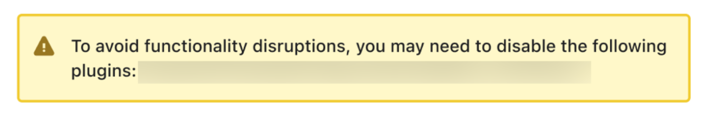 "För att undvika funktionsstörningar kan du behöva inaktivera följande plugin: plugin Namn(en)"