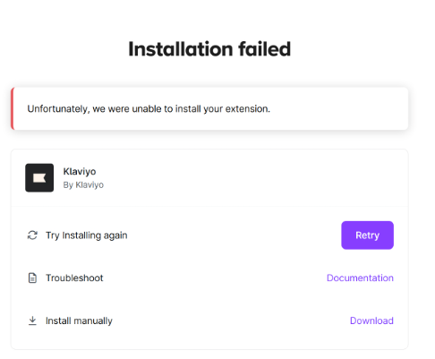 Installation misslyckades - Vi kunde inte installera ditt tillägg